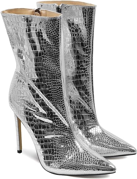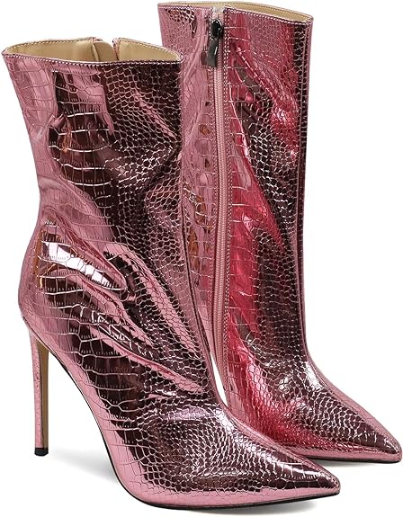 GetMoreBeauty Women's High Heel Ankle Boots - Sexy Pointed Toe Mid Calf with Side Zipper