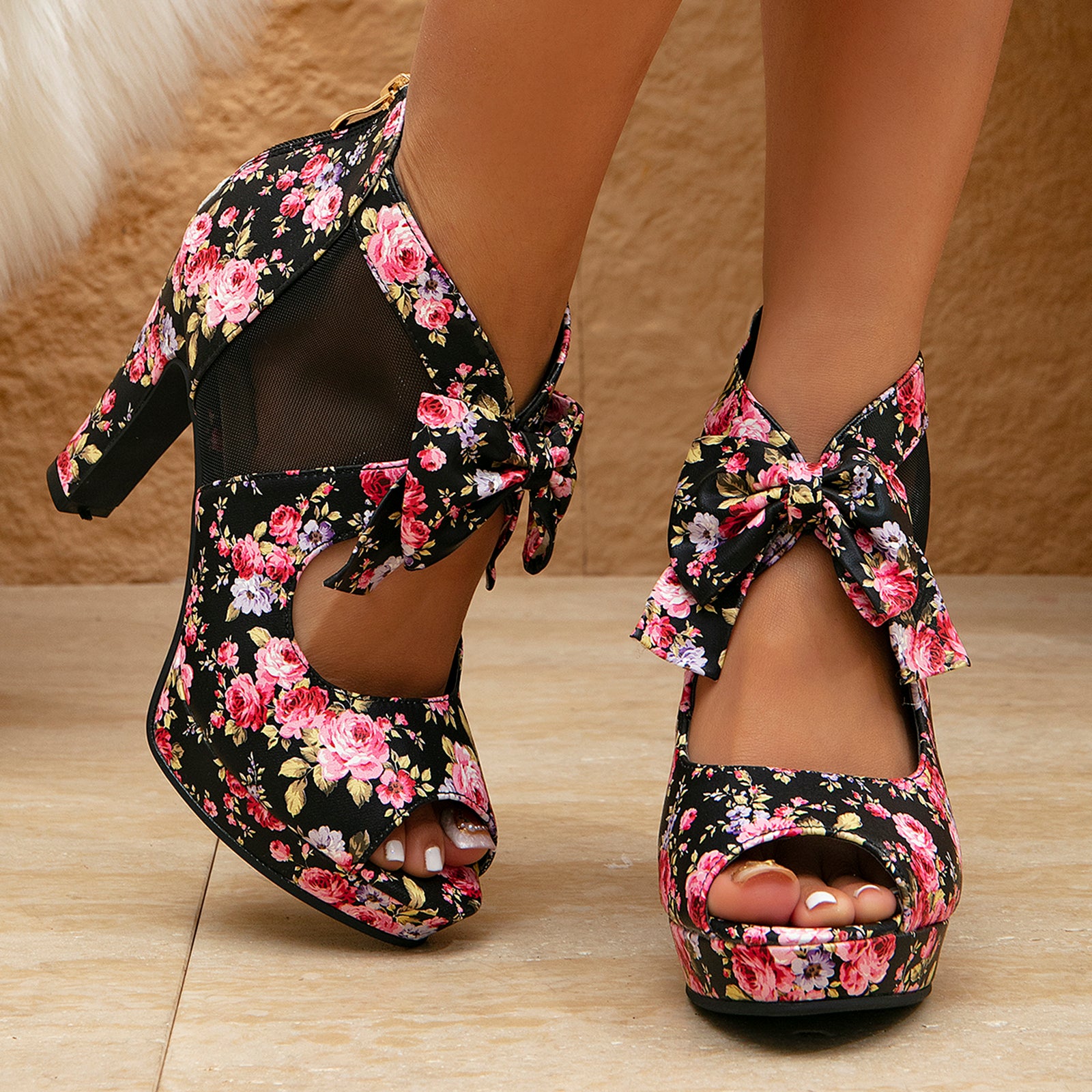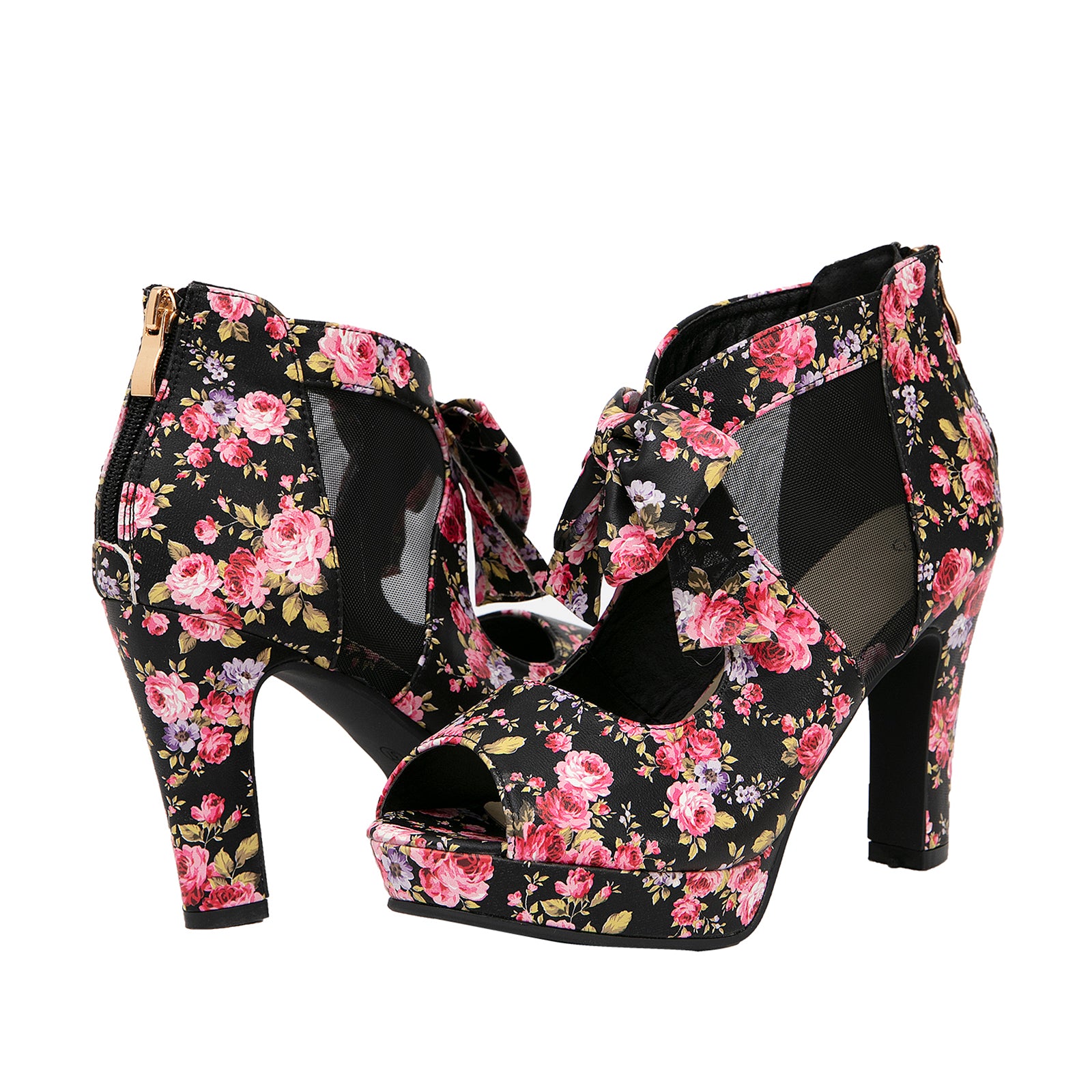 getmorebeauty Open Toe Women flower figure Platform High Heel Shoes Bows Strappy Sandals perfet for wedding/date/night/danceing