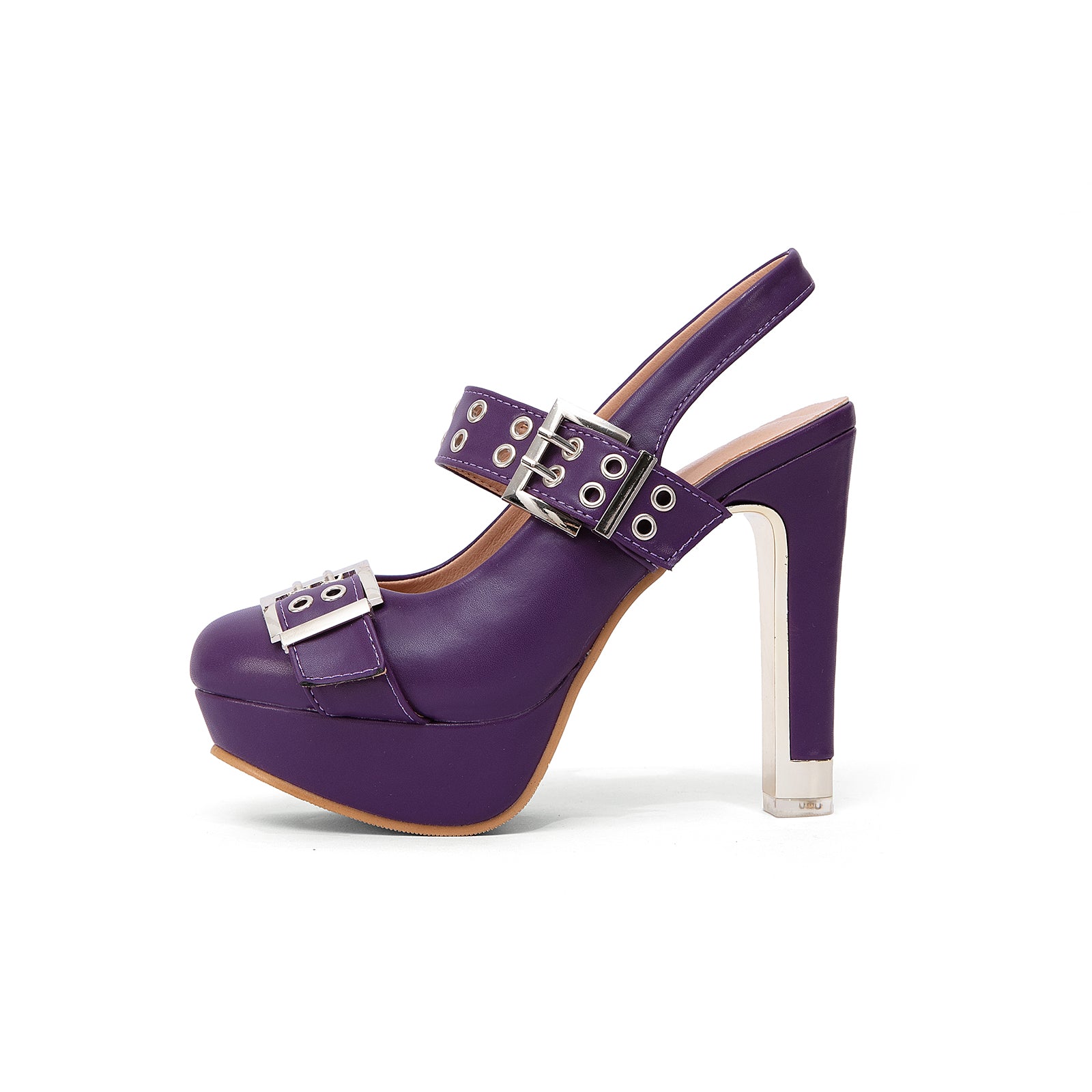 getmorebeauty Women's Buckle Strap Slingback Pumps Chunky Closed Toe High Heels