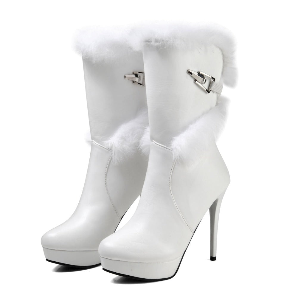 Women's High Heel Mid-Calf Snow Boots